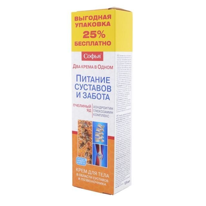 Крем 2 в 1 пчелиный яд глюкозамин-хондроитин комплекс Софья, 125 мл