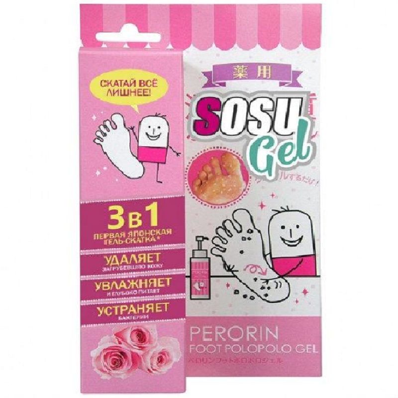 Питающий гель для пилинга стоп содержит 10 видов растительных экстрактов. Он деликатно удаляет ороговевшие клетки кожи, обеспечивая ей комплексное увлажнение и питание. Оригинальная японская формула из растительных компонентов и триклозана устраняет вредоносные бактерии, которые могут являться причиной возникновения раздражений, зуда и неприятного запаха. Аромат розы дарит приятное чувство расслабленности уставшим ногам. Гель скатывается при массаже стоп, превращаясь в мягкий скраб.