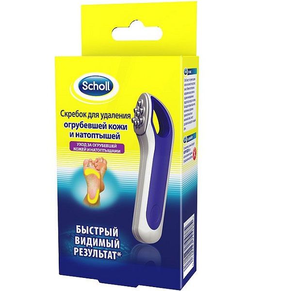 Скребок для Удаления Огрубевшей Кожи и Натоптышей удаляет утолщенную, огрубевшую кожу. Эргономичный дизайн, разработанный экспертами Scholl, обеспечивает простоту и удобство применения. Безопасные лезвия скребка сконструированы таким образом, чтобы обеспечить эффективное и безопасное удаление огрубевшей кожи. Профессиональный результат в домашних условиях. Для достижения максимальных результатов Scholl рекомендует использовать скребок в сочетании с Кремом для Удаления Огрубевшей Кожи и Натоптышей Scholl.