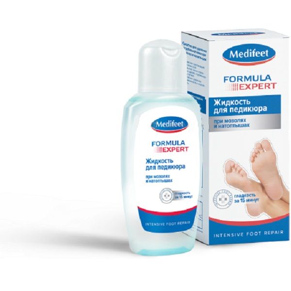 Жидкость для педикюра «Medifeet» размягчает ороговевший слой, позволяет легко и безопасно удалить его пилкой. Активные компоненты в составе питают, увлажняют и смягчают кожу стоп. Комплекс экстрактов алое-вера, шалфея, женьшеня, ромашки и левзеи успокаивает, заживляет и надолго сохраняет увлажненность и эластичность.
