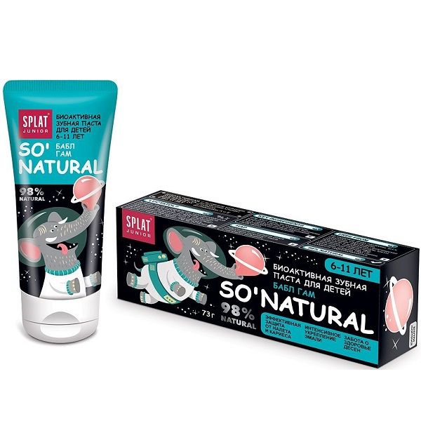 Натуральная зубная паста Splat Junior предназначена для ухода за полостью рта детей старше 6 лет. Паста отлично защищает от кариеса, помогает в правильном формировании эмали и бережно заботится о деснах. Ее запатентованная формула разработана на основе экстракта японского лакричника, который до 96% сокращает появление зубного налета и борется с бактериями, вызывающими кариес. В состав продукта также входят гель алоэ вера, экстракты коры магнолии, клюквы и граната, а также гидроксиапатит кальция, схожий по составу с зубной эмалью, который способствует укреплению эмали.