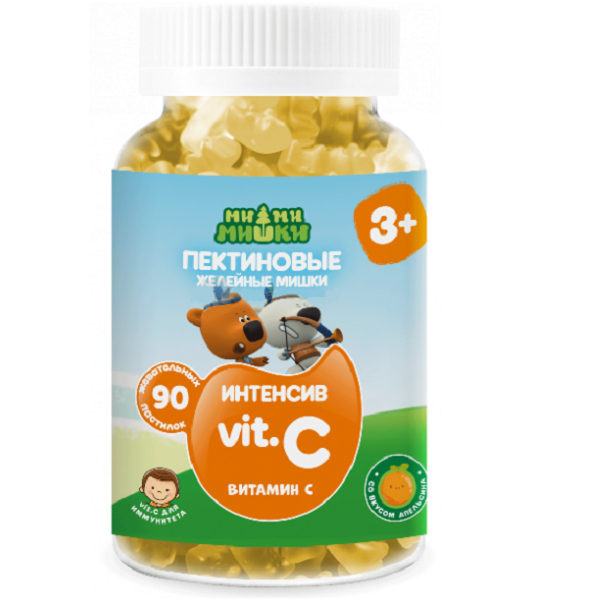 Пектиновые жевательные пастилки с витамином С в форме мишек, желейные. Витамин С обладает иммуностимулирующим действием, способствует повышению сопротивляемости организма к инфекциям и вирусам, участвует в синтезе компонентов костно-хрящевой ткани. Без искусственных красителей и ароматизаторов.