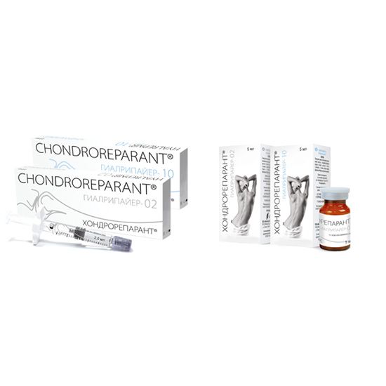Гелевый материал ГИАЛРИПАЙЕР-02 (хондрорепарант) позволяет восстанавливать эффективную концентрацию гиалуроновой кислоты в матриксе, что приводит к стимуляции фибробластов и хондроцитов. Промежуточные продукты деградации гиалуроновой кислоты оказывают ангиогенное, иммуностимулирующее и противовоспалительное действие.