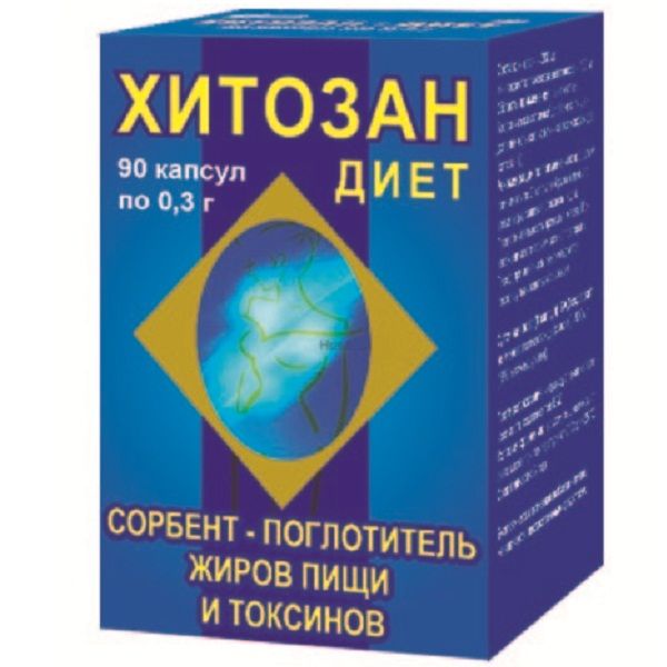 Хитозан - полимер, представляющий собой N-дезацетилированную форму хитина и являющийся водорастворимым продуктом его переработки. В исходном состоянии хитин находится в панцирях и раковинах морских ракообразных, таких как крабы, креветки и омары, а также в наружном скелете морского зоопланктона. Благодаря своей структуре, хитозан обладает высокими липотропными, сорбирующими и иммуномодулирующими свойствами. Липотропные свойства хитозана обусловлены способностью связывать высококалорийные жиры, содержащиеся в пище, непосредственно в пищеварительном тракте до их усвоения, препятствуя отложению в "проблемных" местах. Устранение жира из пищи активизирует процесс образования энергии из уже существующих жировых отложений, что приводит к снижению массы тела без потери мышечной силы, понижению уровня холестерина и триглицеридов в крови. Сорбирующие свойства проявляются в способности хитозана связывать и выводить ионы тяжелых металлов, радионуклеидов и других токсических веществ. Олигосахариды, содержащиеся в хитозане, способствуют росту бифидобактерий и, тем самым, подавляют действие патогенных бактерий, усиливают внутрикишечный синтез витаминов группы В (Bl, B2, ВЗ, РР) и фолиевой кислоты кишечными микроорганизмами, уменьшают процессы брожения и улучшают перистальтику в кишечнике.