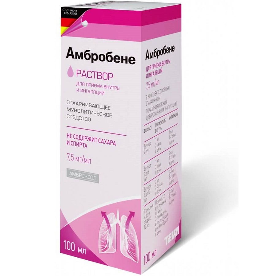 Амбробене - раствор для приема внутрь и ингаляций применяется при заболеваниях дыхательных путей с выделением вязкой мокроты и с затруднением отхождения мокроты: